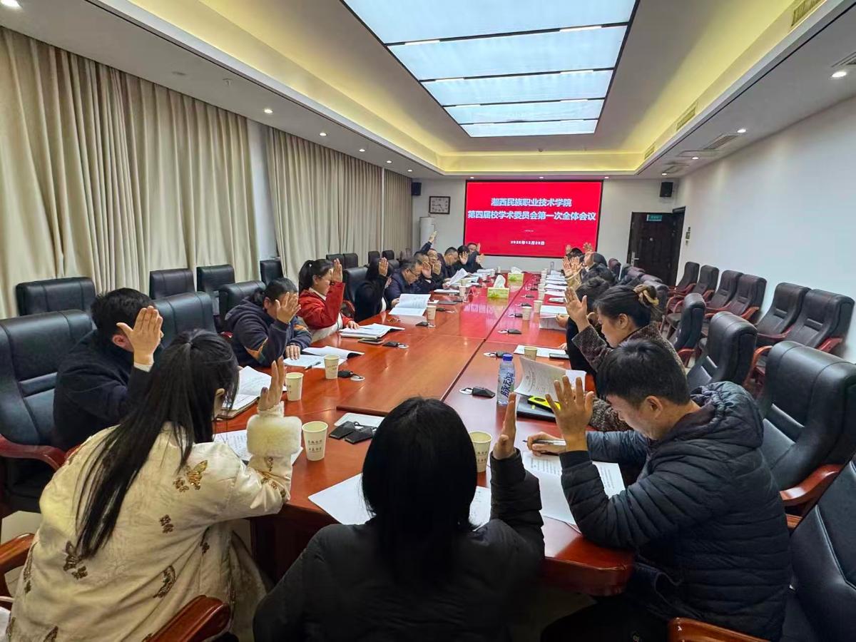 12月29日,湘西民族职业技术学院召开第四届学术委员会第一次全体会议。党委副书记、校长翁波,党委委员、副校长白刚,党委委员、副校长吴娟及第四届学术委员会委员出席会议。会议由白刚主持。